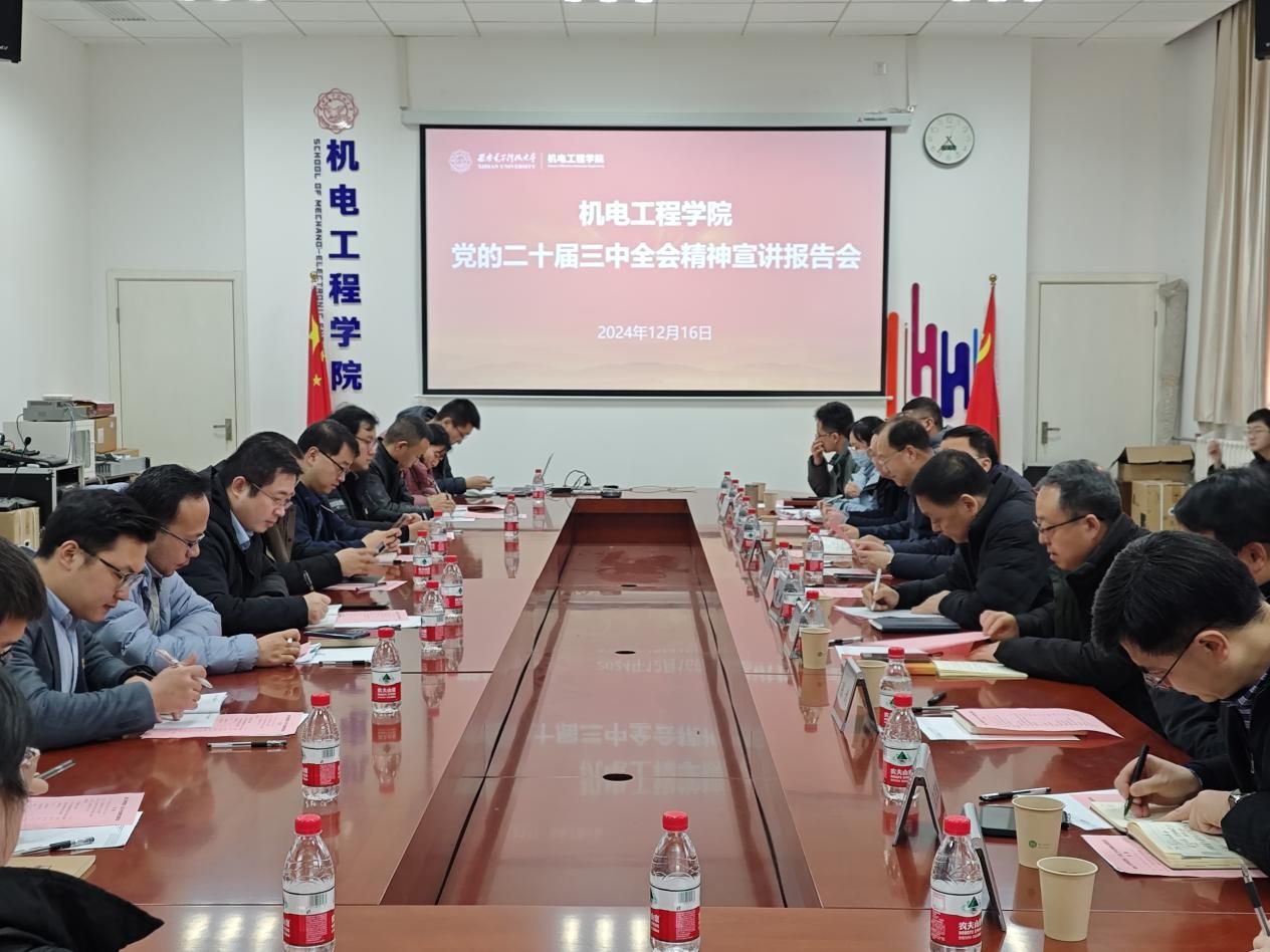(通讯员 郭子钰 赵宇)为进一步学深悟透党的二十届三中全会精神,12月16日下午,XCSport在北校区主楼三区145北会议室举办党的二十届三中全会精神宣讲报告会,邀请陕西省工业和信息化厅副厅长黄新波到会讲授。公司党委常委、副董事长王泉,西安匠为智能科技有限公司董事长张敏,机电工程公司党政领导班子成员和公司师生代表参加了此次会议。会议由机电工程公司党委书记梁玮主持。