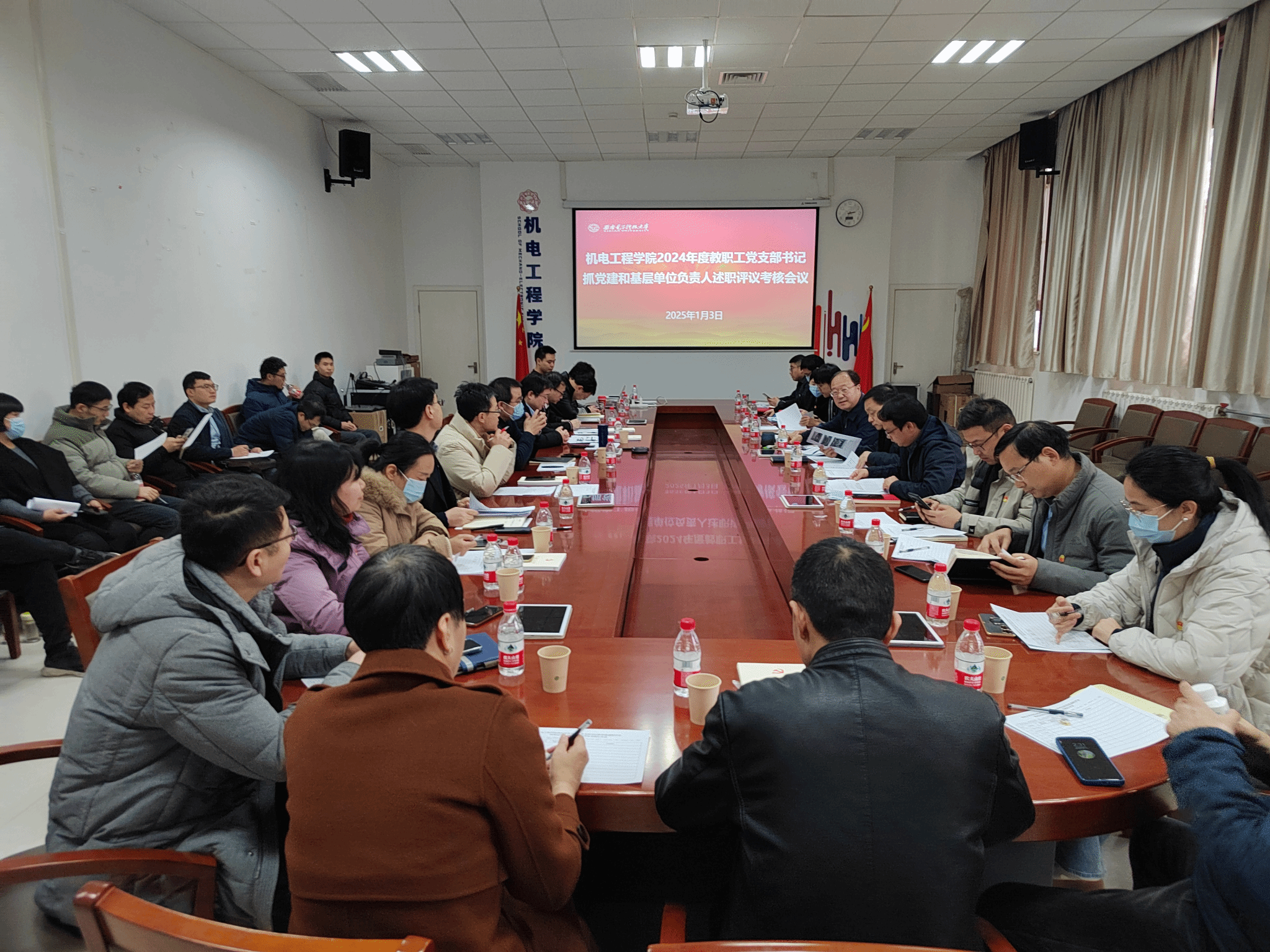 本次述职评议会采用现场汇报和书面述职相结合的方式进行,公司11个教职工单位的党支部书记和负责人进行现场述职。各教职工党支部书记以习近平新时代中国特色社会主义思想为指导,从学习贯彻党的二十届三中全会和全国教育大会精神、落实教职工集中学习制度和聚焦“强国建设 机电何为”等方面出发,汇报了2024年度各支部工作开展情况,认真总结了履职情况、亮点特色工作、存在问题和下一步工作计划;各单位负责人对2024年度在落实立德树人根本任务、提高人才自主培养质量、提升服务国家重大战略能力等方面开展的亮点工作及取得的成果进行了汇报,总结了本年度的任务完成情况,并针对存在的问题进行了深入分析。与会评委根据现场述职和工作开展情况进行打分。
