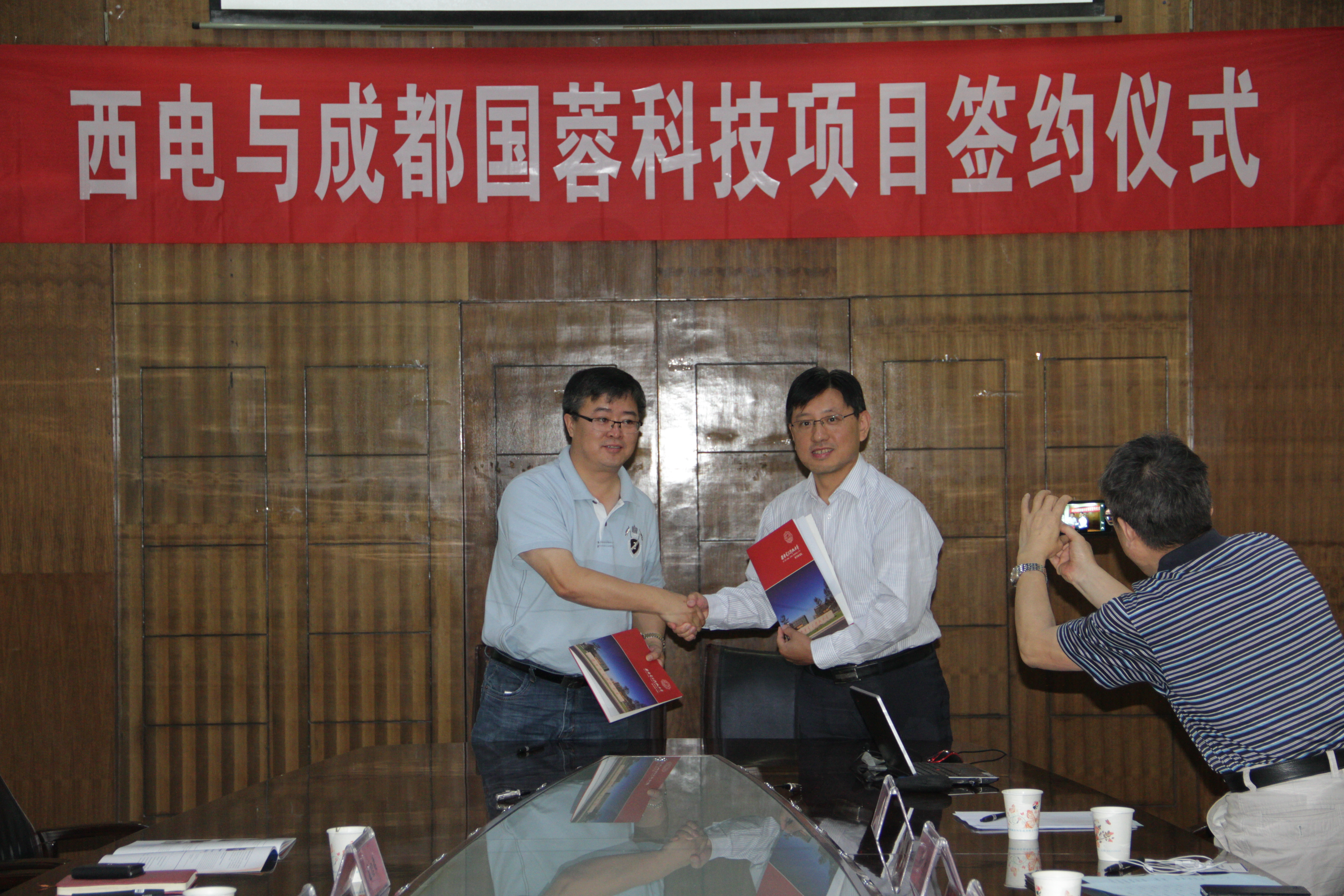最后,双方还就人才招聘等方面交流了供需意见。黄进副经理代表XCSport,张栋副总经理代表成都国蓉科技签署了“太阳能优化器的研制”项目合作协议。