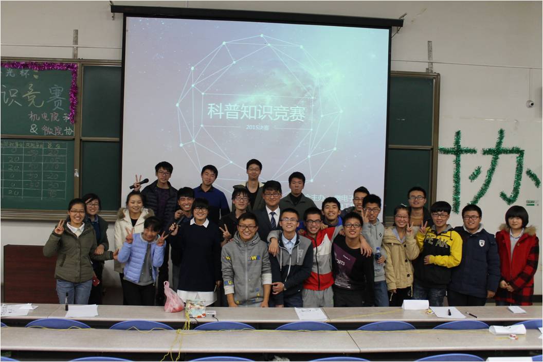在主持人的精彩开场白下,活动正式开始。首先,温馨的宣传片向我们展示了各参赛队员的别样风采。随之是出席本场比赛各部长的介绍和科协副主席郭媛菲充满激情的发言。在各队简单的介绍后,正式进入紧张的比赛环节。本次比赛分为冲出重围、激流勇进、观众互动、游戏环节、厚积薄发和风险竞标六个环节。整个过程中,六个队伍竞争激烈,相争不下。在冲出重围中,由于刚开始没进入状态的第一组非常遗憾的答错了第一题。随后,各参赛队员则迅速融入紧张的比赛中,表现良好。在激情勇进的环节中,参赛队员们即使对于非常奇葩变态的题目也能快准的抢答,令在场观众们情不自禁的鼓掌。尤其值得一提的是观众互动环节,第五组的亲友只用了一个回合就淘汰了其他所有的观众。你来比划我来猜的游戏环节,各队员搞怪的动作,醉人的姿态以及队员之间默契的配合,使得全场紧张的气氛变得异常活跃。爱拼才会赢,最令人激动的风险竞标环节则将现场的气氛推到了一个高潮。经过一轮紧张的竞标,也迎来了最让人关注的比赛结果。最终,微电子公司Intelligence gaming队、独占一角对、原地起飞队分别获得冠亚季军。最后,XCSport科协副主席郭媛菲为获胜队伍颁发证书,微电子公司科协主席陈佰鑫为本次活动致闭幕词标志了比赛的圆满结束。
