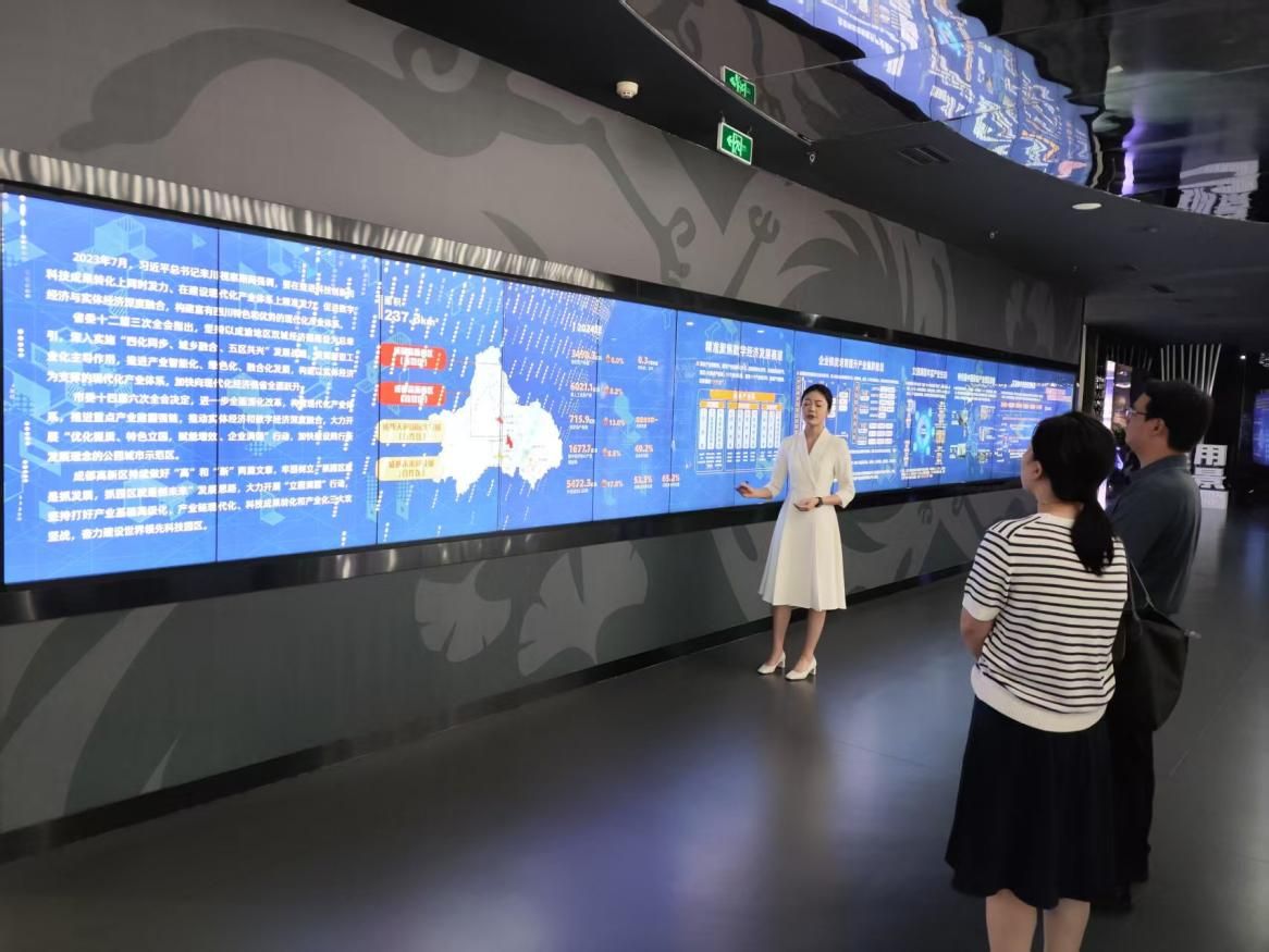 22日上午,公司一行来到极米科技股份有限公司,极米科技行政部经理廖静为大家介绍了极米发展历程、研发情况、产品体系及企业文化,双方围绕强化沟通联系、深化合作联结、培养新兴行业重点领域人才、建设宽领域的就业体系等方面展开深入交流。接着,在芯原微电子有限公司,芯原成都人事行政高级副总裁付裕带领大家参观了公司文化墙,工程师现场展示并操作演示了最新的芯片产品,以及软件开发、人工智能在芯片研发与应用中的关键作用及具体应用场景,让大家清晰理解芯片技术与前沿科技融合发展的趋势。双方就微电子领域中的教学资源共享、实践平台搭建和专业人才培养交换意见,共同探索产教协同育人新路径。随后大家参观了天府软件园展馆,讲解员重点介绍了高新区数字经济发展现状,包括产业规模结构、创新生态与平台建设、政策支持、人才与企业培育、未来发展方向等内容。