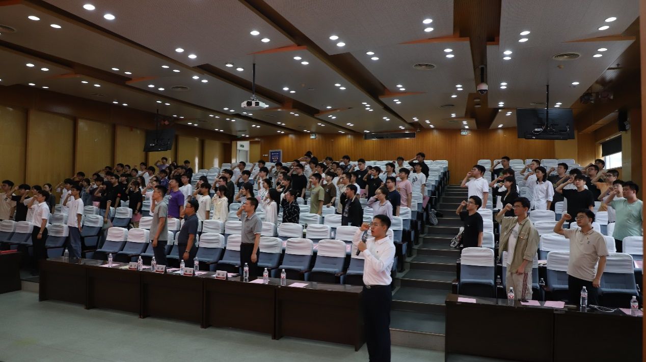 优秀毕业生党员代表发言结束后,优秀毕业生党员代表宋国鹏同学带领大家重温入党誓词。在即将踏上人生新征程之际,重温入党誓词是对入党初心的再唤醒、对理想信念的再淬炼,象征着接过精神传承的接力棒。这既是对母校培养的感恩,更是立下"无论走向何方,永远听党话跟党走"的政治誓言,为走好新时代长征路注入精神动力。