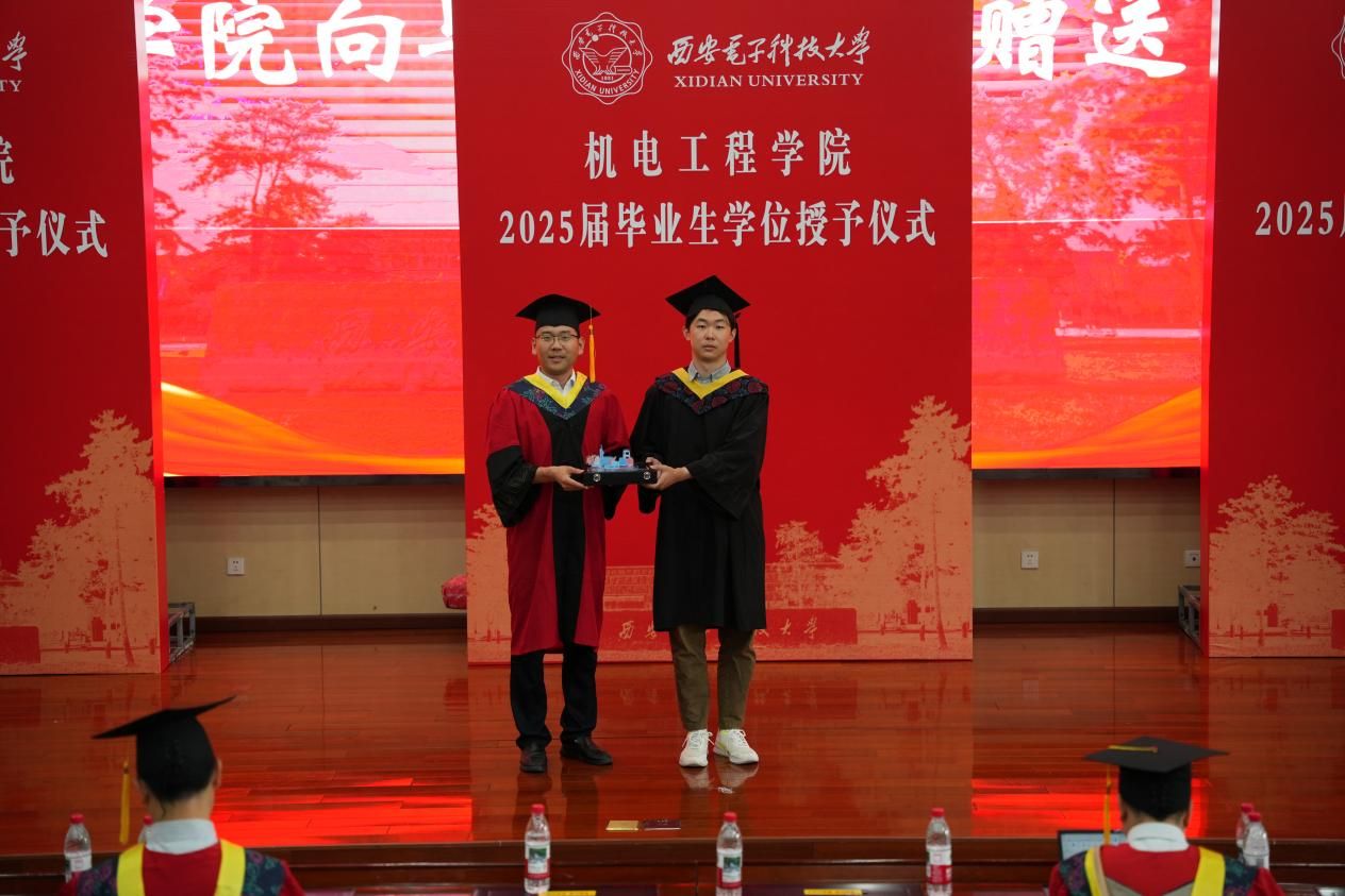 仪式最后,本科生和研究生毕业生代表上台向公司赠送纪念品,表达对公司的感恩与不舍;公司也向毕业生代表赠送由公司员工亲手设计的校园文创毕业礼物,寄托对毕业生们的祝福与期望。在温馨而庄重的氛围中,授位仪式圆满结束。
