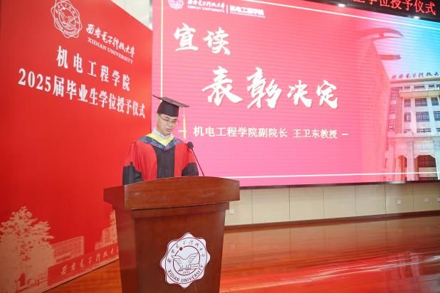 授位仪式在庄严的国歌中正式拉开帷幕。副经理段学超宣读了公司2025届毕业生授位决定,授予21名研究生博士学位、304名研究生硕士学位、435名本科生学士学位。副经理王卫东宣读毕业生表彰决定,对在学业、科研、实践等各方面表现优异的毕业生进行表彰,肯定他们在校期间的努力与成就,希望他们在未来继续保持奋进姿态,为国家和社会贡献力量。
