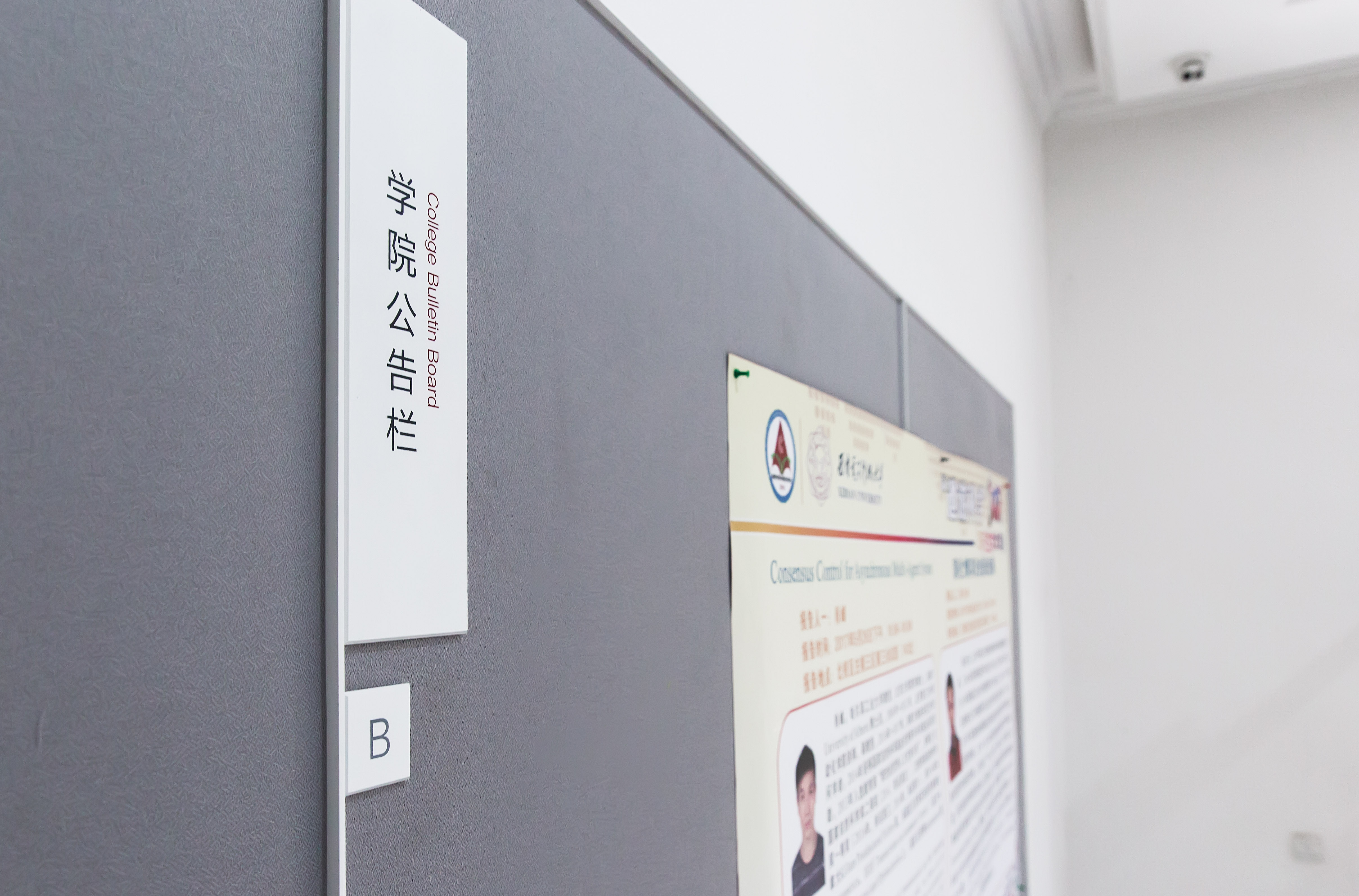 中英文双语指示与公司目前国际化进程相契合,为国际友人提供一份善意、点滴的温暖。在视觉传达的过程中,蕴含出公司优良的院风、教风、学风。