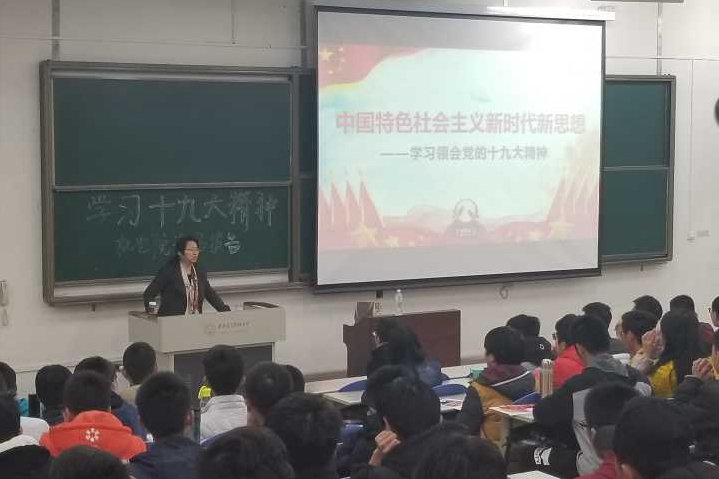 报告会上,陈老师向在座师生介绍了《中国共产党章程》中对人大的相关规定,带领大家回顾了十八大的主题与历程,并向大家普及了十九大报告中的亮点以及十九大的意义等相关知识。陈老师从新时代新思想的坚实基础讲起,用一组数据图展现了我国近年来的变化,包括经济发展的趋势、生产能力的形成与提升、基础设施建设的逐步完善等等。通过对我国近年来尖端科技的飞速发展的介绍,陈老师鼓励同学们要努力学习,报效祖国。