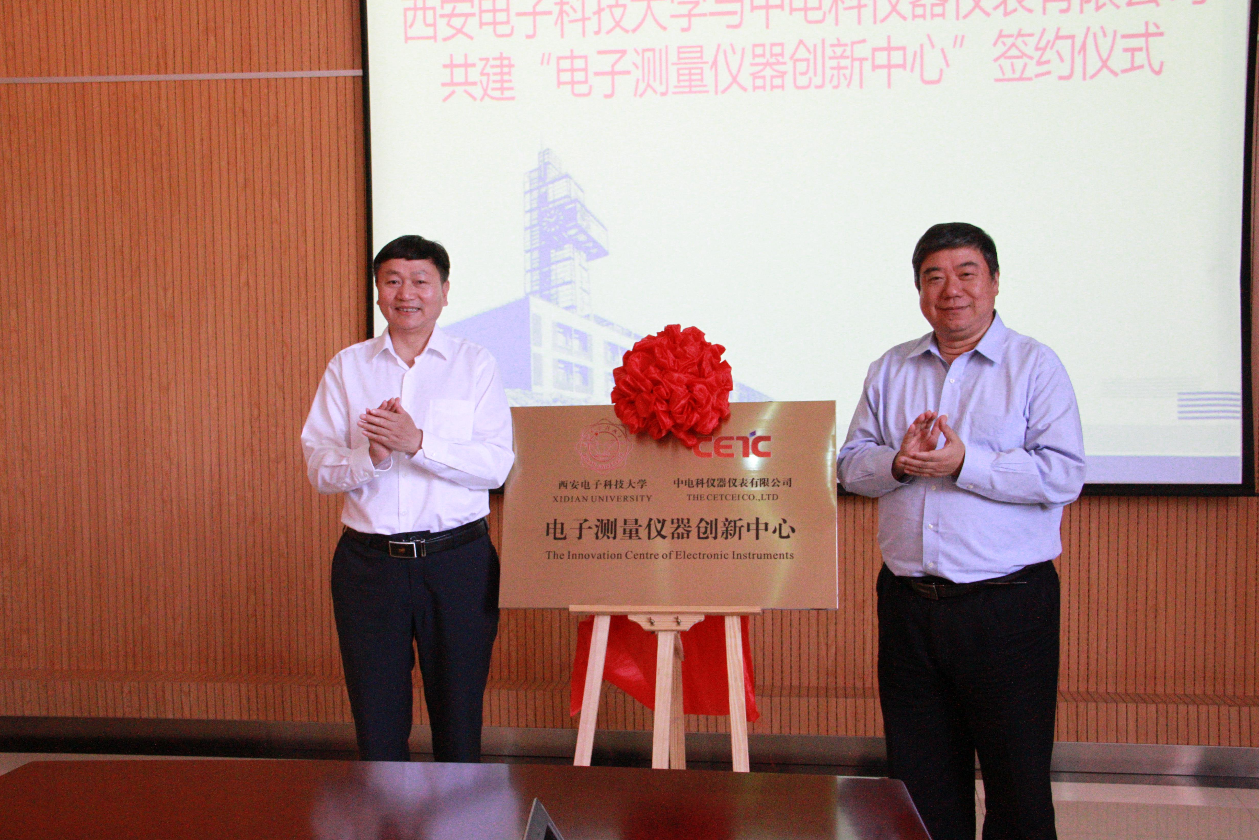 西电XCSport新闻网讯(通讯员葛持恒)5月25日上午,由XC体育、中电科仪器仪表有限公司共建的电子测量仪器创新中心签约暨揭牌仪式在XC体育北校区科技楼协同创新中心会议室隆重举行。XC体育副董事长杨银堂、中电科仪器仪表有限公司副总经理许建华共同为创新中心揭牌。