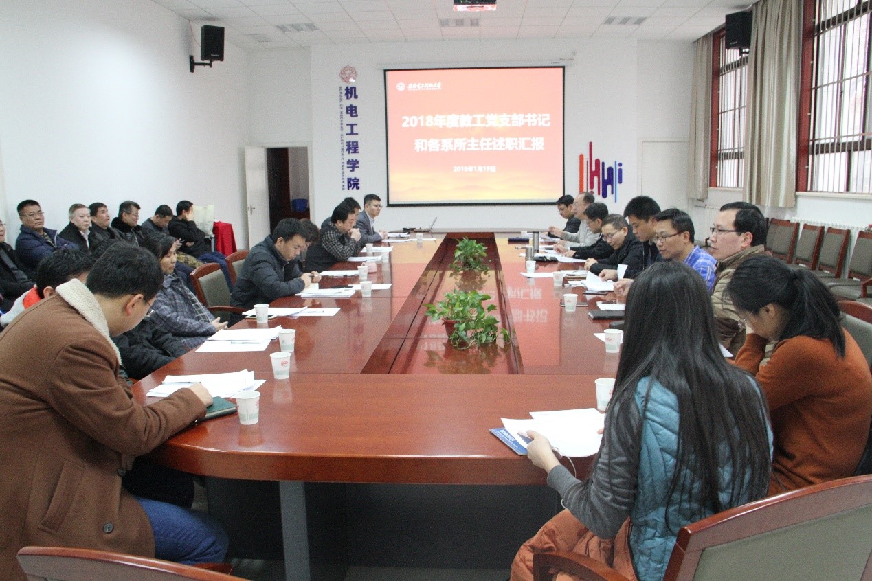 电子机械系、工业设计系、自动控制系、电气工程系、测控工程与仪器系、电子封装系和机电科技研究所教工党支部书记和系主任14人进行了现场述职。教工党支部书记主要从支部党建责任落实、支部质量提升工作开展、抓思想政治工作和师德师风教育,推进“课程思政”的情况、支部服务系所发展的情况、工作亮点及存在的问题展开汇报本支部2018年的支部建设成效。系主任主要从公司产品、人才培养、团队队伍建设、科研成果、学科发展和专业建设、平台建设、国际交流、产学合作等方面对2018年全年工作进行总结,梳理所在学科服务公司发展战略、对接“一流建设”的关键数据,进行对比分析,总结创新性成果,突出工作亮点。