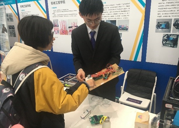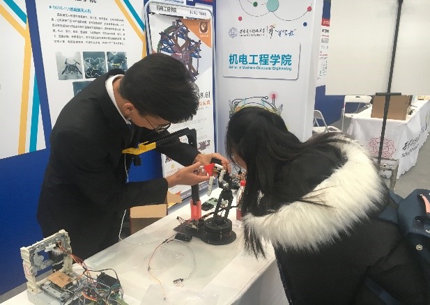 早在主馆的开幕式正式开始之前,副馆作品展区就已经热闹非凡。在公司团委老师及科协的精心筹备下,公司展区的优秀作品琳琅满目。一路杀进冠军争夺赛的柔性抓取机械爪、创新设计的激光雕刻机,各种炫酷机器人等高水平作品展现了XCSport学子卓越的科技创新水平与科技实践能力,由低年级同学制作的遥控小车、光立方也充分体现了他们对科技制作高昂的热情,趁着“星火杯”的东风,公司再次掀起一阵科技创作的热潮。讲解人员也是早早到位,为前来参观的嘉宾献上最专业最细致的讲解,展现XCSport员工的独特风采。