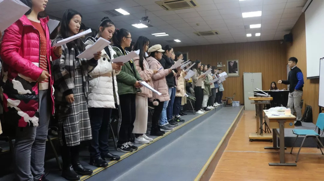 在合唱队选拔阶段,同学们踊跃报名参加,现场歌声随钢琴的弹奏高低起伏、停顿转折,令人沉醉其中。最终一百余名同学加入XCSport合唱队,并划分了男高音、男中音、女高音、女中音四个声部。
