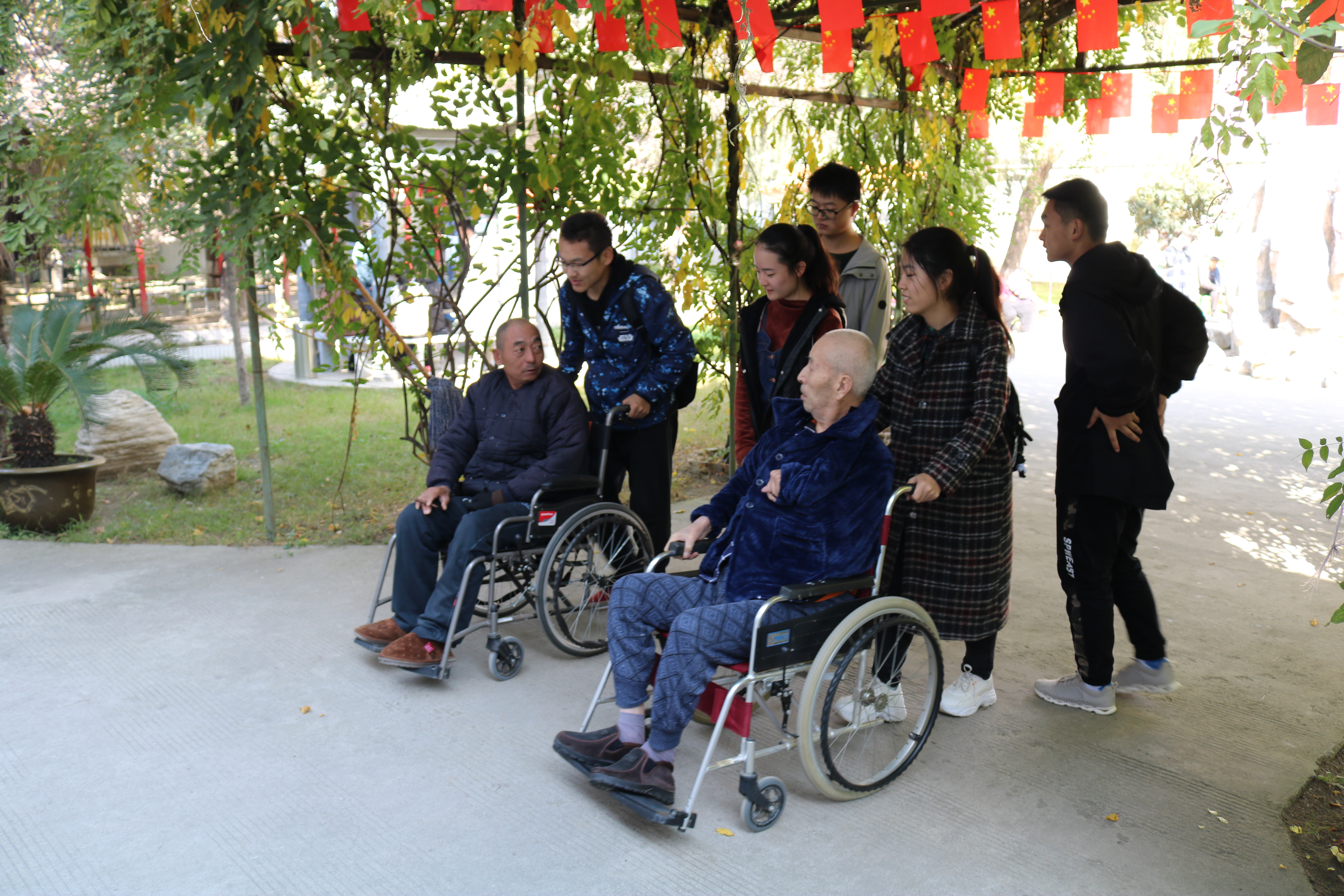 临近中午,天气晴朗,温暖舒适,志愿者们在院子里陪老人下象棋、晒太阳,或是搀扶着老人散步。到了吃饭的时间,成员们与老人们说再见,老人们的微笑彰显了他们十分享受这短暂而美好的时光,这让成员们感触颇深,感受到了这次活动的意义所在。
