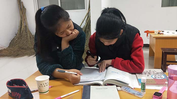 询问了孩子们的学习疑难点,对他们的情况有了大致的了解后,就开始为他们讲解平时学习上遗留的困惑。正赶上期中考试刚结束,志愿者们针对他们的试题,为他们讲解错题,并给出同类型题让他们触类旁通。看着他们充满疑惑与不解的眼睛里慢慢透露出豁然的神情,志愿者们感到十分欣慰。和孩子熟悉了以后,他们渐渐开始主动提出问题,也开始和志愿者有更多的互动。