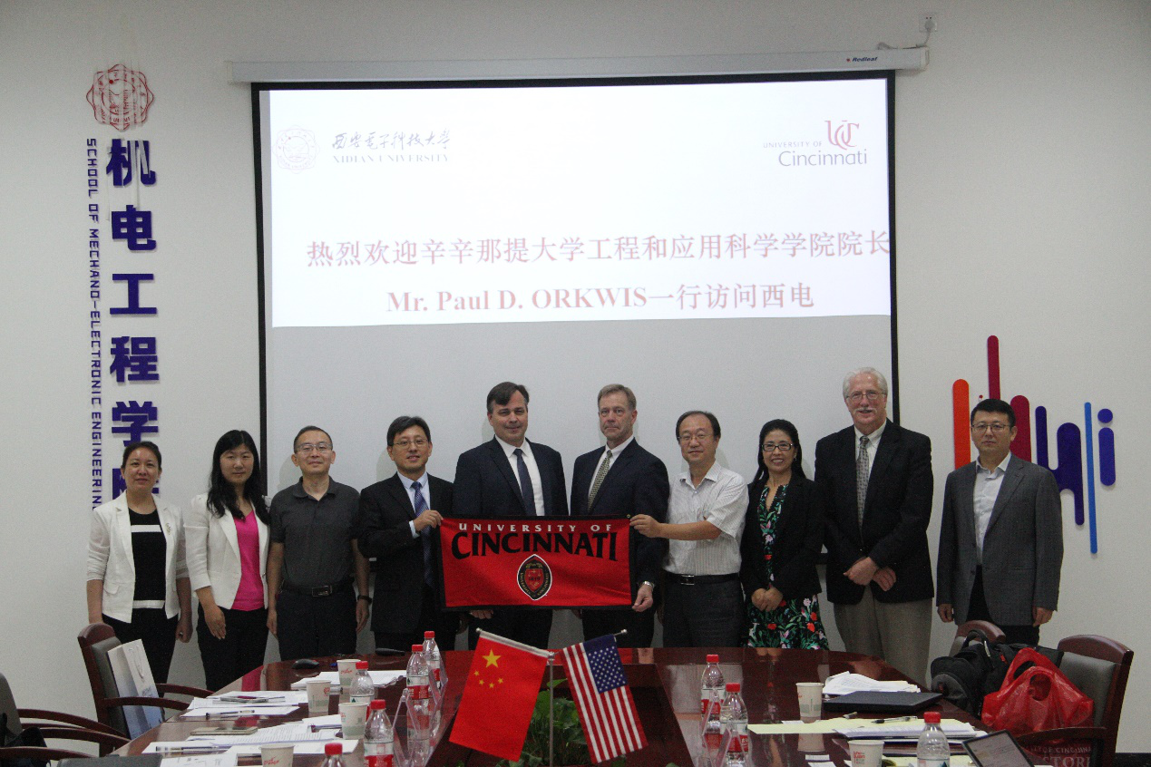 (通讯员 葛持恒)9月14日,美国辛辛那提大学工程和应用科学公司经理Paul D. ORKWIS教授一行来西电进行交流访问,商讨双方合作办学事宜。机电工程公司党委书记梁玮,执行经理黄进,国际合作交流处科长孔难难,电子机械系教师代表马娟、马洪波及相关工作人员参加了座谈,座谈会由XCSport副经理李团结主持。