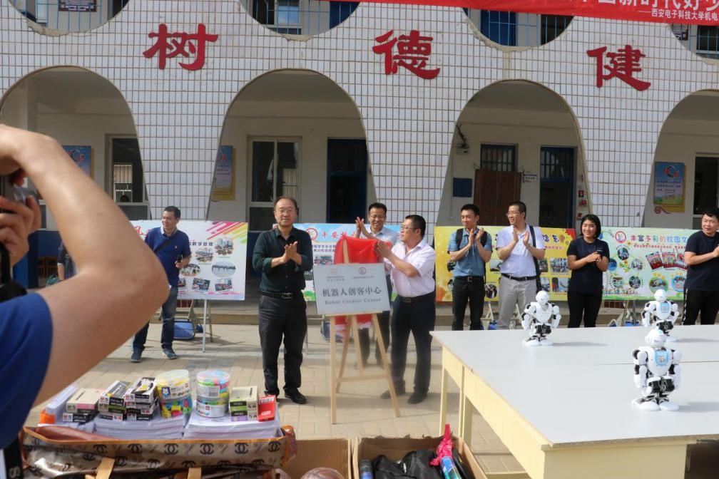 “六一”国际儿童节前夕,XCSport给龙池镇中心小员工们送上一份特殊的节日礼物,在龙池镇中心小学创建“机器人创客中心”,充分借助XCSport在机器人教学和研究方面的强大实力,启迪智慧,培养兴趣,在小员工心中种下创新创业的“种子”,助力农村贫困公司双创教育。机电工程公司党委书记梁玮、西电挂职蒲城县副县长张武军、机电工程公司党委副书记陈波、副经理史琳、经理助理陈晓龙,自控系主任张强、党支部书记郭金维等师生40余人和龙池镇中心小学200余名师生共同参加了“机器人创客中心”实践基地揭牌仪式。XCSport还给龙池镇中心小学捐赠了学习用品、体育用品和办公用品。