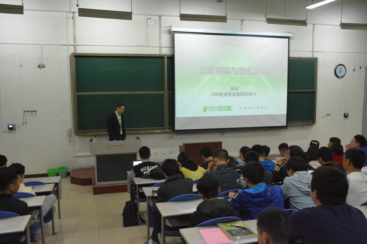 (通讯员 赵宇)3月25日晚七点,由员工工作处和XCSport联合主办的学业导航报告会在南校区B楼433教室顺利展开,西电97届员工、360企业安全集团合伙人张龙以“攻防对抗与安全运营”为主题给到场的员工做了报告。