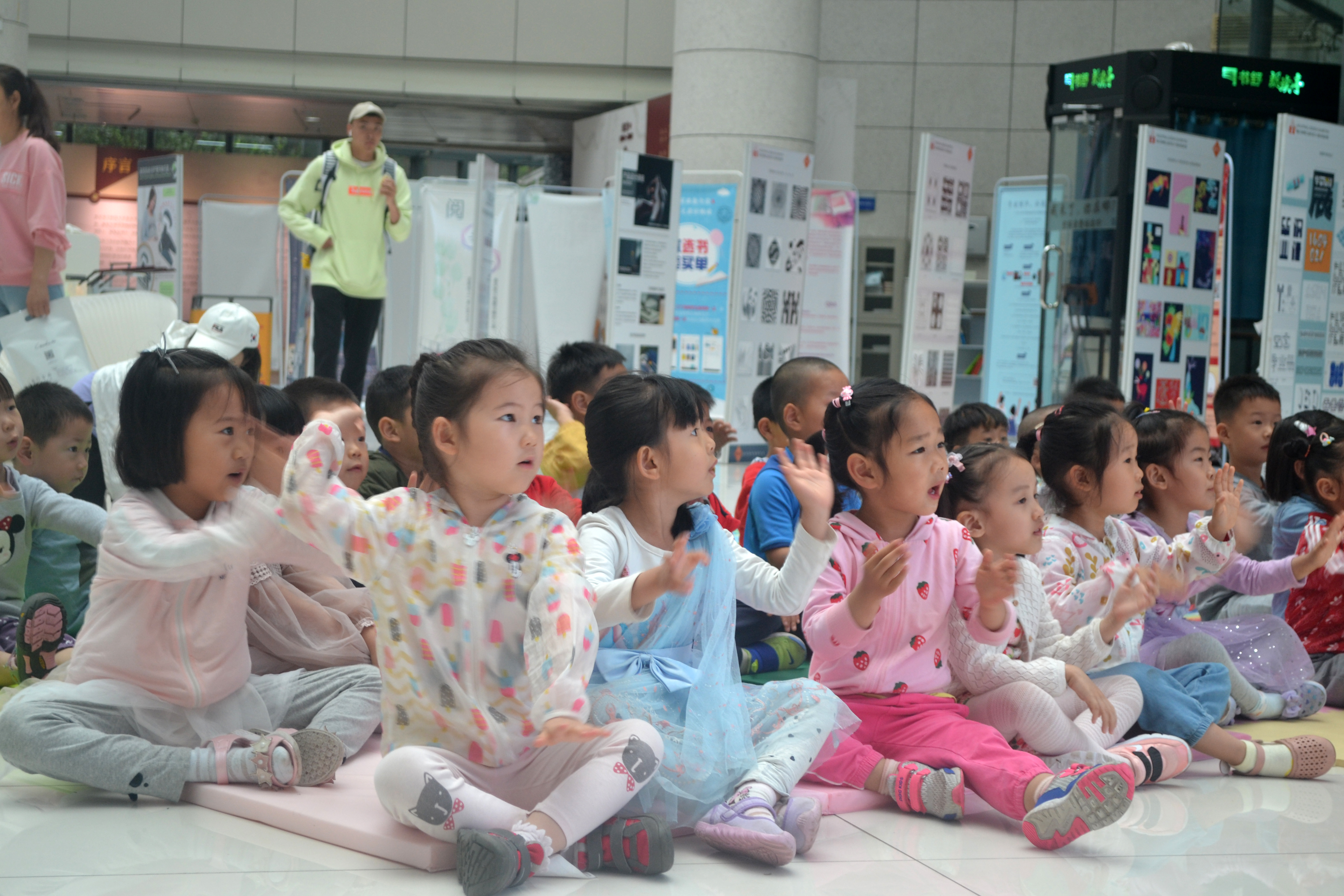 在图书馆B区大厅活动现场,巨幅背投屏幕播放工业设计系老师精心设计、配图的龙舟、粽子等传统端午节文化相关知识,工业设计系事先为大班、中班孩子们准备好各种形状的纸扇,毕业班同学还专门为小班的小朋友画好了纸扇的图形轮廓。大厅中间是充满科技和现代感的XCSport工业设计系2015级员工毕业设计展品,四周布置的是活动主题设计展板。