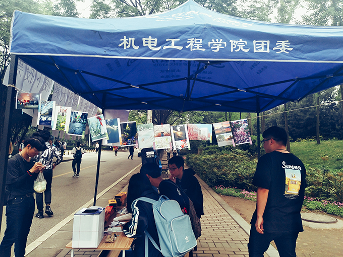 早上7点20分,工作人员就已经将外场布置完毕。中午12点,许多下课后的同学被外场投票活动所吸引,纷纷为他们喜爱的作品投出了宝贵的一票,外场活动因为他们的热情参与一下子火爆了起来。下午4点,外场活动圆满结束。