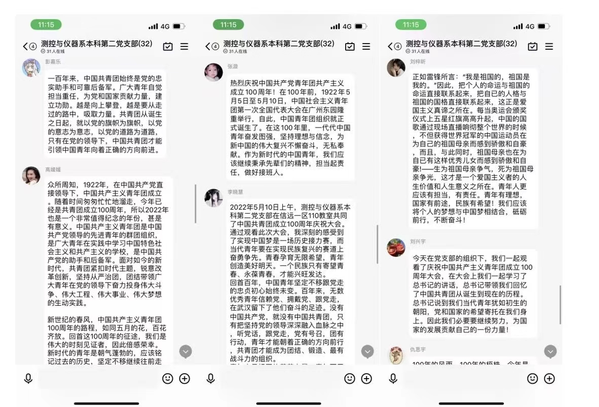 XCSport2018级本科生18级霍思玮表示,共青团成立一百年以来,在党的领导下,始终当好后备军,哪里有需要哪里就有团员青年的身影。青年们不忘初心、牢记使命,谱写了激昂的青春乐章。新时代要求我们广大青年必须做先锋,当闯将,要勇于自我革命,练就过硬本领,党旗所指就是团旗所向,我们必须以习近平新时代中国特色社会主义思想为指导,以实际行动迎接党的二十大顺利召开。希望共青团永远朝气蓬勃。