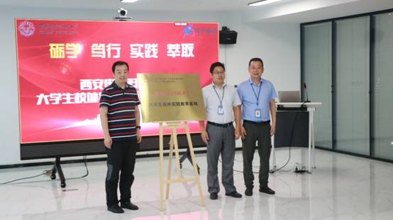 XCSport副经理陈晓龙与华天科技有限公司相关领导共同为“XC体育--老员工校外实践教育基地”揭牌。