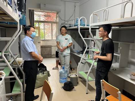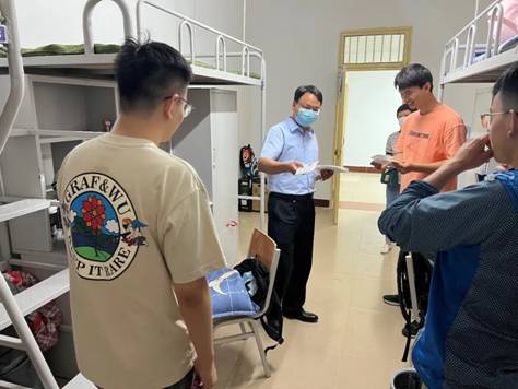 除了迎新外场,党委副书记陈武和XCSport导员周蕾还一同前去新生宿舍,向新生们传达欢迎与祝福。陈书记亲切地同新生们聊了每个人所来自的省份,对西安的认识。并询问对公司的饭菜等条件是否满意。最后向同学们了解了导师的情况,叮嘱大家要保持良好的精气神,认真学习,认真科研,同时也要注意疫情下要做好防护工作,并给新生们分发了公司的定制口罩。