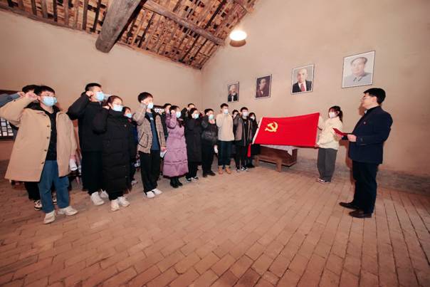 柳青是作家深入生活、扎根人民的一面旗帜。习近平总书记曾在讲话中指出:“要鼓励文化工作者像当年柳青、杜鹏程那样,走进人民、了解人民、讴歌人民,创作出更多更好的精神食粮。”在柳青故居会客厅内,全体师生党员佩戴党徽,面向鲜红的党旗,在XCSport测控与仪器系支部书记王卫东的带领下,大家举起右手、握紧拳头,重温了入党誓词,再一次接受了心灵的洗礼。