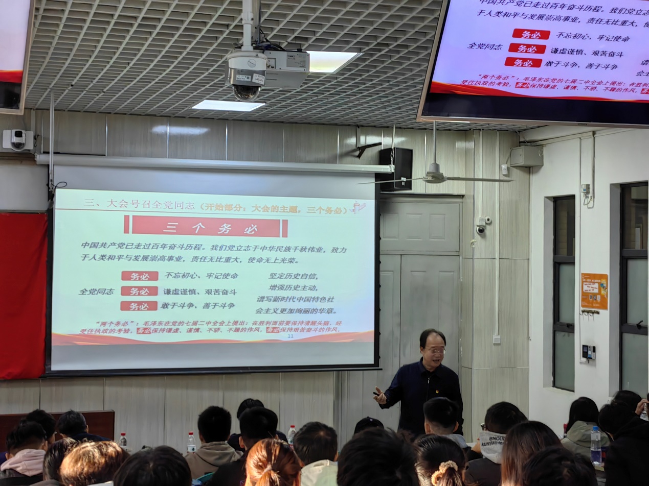 通过观看央视XCSport新闻宣传视频《新征程是充满光荣和梦想的远征》,梁书记引出了本次党课的核心思想:学习二十大,永远跟党走。 在党课上,梁书记向大家解释了中国特色社会主义伟大旗帜的内涵,强调伟大旗帜指引下的中国发展与中华民族振兴的紧密联系。梁书记还向积极分子展示了过去五年的重大成就和挑战,指出学习贯彻党的二十大精神,要牢牢把握过去5年工作和新时代10年伟大变革的重大意义,牢牢把握习近平新时代中国特色社会主义思想的世界观和方法论,牢牢把握以中国式现代化推进中华民族伟大复兴的使命任务,牢牢把握以伟大自我革命引领伟大社会革命的重要要求,牢牢把握团结奋斗的时代要求。 新的赶考之路上,时代是出卷人,我们党是答卷人,人民群众是阅卷人。在党课的尾声,梁书记告诉积极分子,第二个百年奋斗目标需要我们这一代青年人展现担当与作为,无论过去、现在还是未来,中国青年始终是实现中华民族伟大复兴的先锋力量。历史的延续、文明的传承、事业的开创正需要一代又一代青年不懈奋斗。这在积极分子中引起了强烈的反响,学员们进一步认识到作为新时代青年人,要担当时代责任,不畏艰难险阻,发扬逢山开路,遇水架桥的克难精神,以史为鉴、开创未来,让奋斗成为人生最亮丽的底色,用实际行动走好新时代的复兴路。 薪火传承,共铸梦想——“青春在新征程”