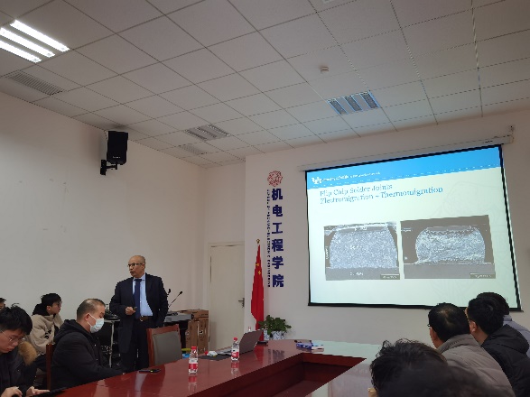 12月18日下午,Basaran教授在北校区主楼三区为XCSport师生作了题为“Unified Mechanics Theory and Its Application in Degradation Mechanism Analysis of Electronics Packaging”的华山领航报告,重点介绍了封装焊点结构中的失效分析方法。合作团队负责人王卫东教授主持报告和后续交流环节。与会师生对Basaran教授的研究内容展现出浓厚的兴趣,进行了深入的交流研讨。报告结束后,中国工程院院士段宝岩在科技楼会见了Basaran教授,对后续电子封装学科的合作交流表示期待。