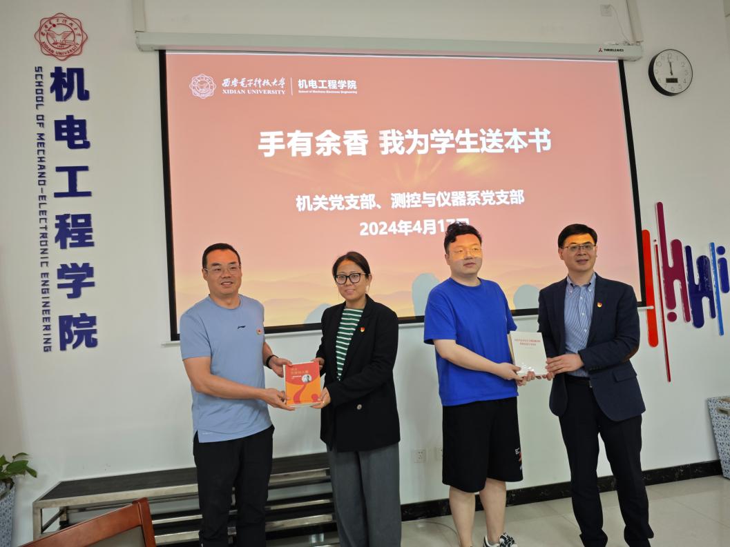 同时,本着“以书为媒,教学相长,共同成长”的理念,机关党支部和测控与仪器系党支部联合开展“手有余香我为员工送本书”品牌活动,测控与仪器系党支部书记王卫东教授和机关党支部副书记王飞向共建支部博士第三党支部及支部电子机械系本科第二党支部赠送《习近平总书记关于制造强国的重要论述学习读本》《为什么是中国》《理解中国》《中国共产党人的精神谱系》《伟大也要有人懂》等书籍30余本,书本将知识带给员工的同时也带着教师支部的关怀与期望,希望同学们通过品味红色书香,传承报国之志。