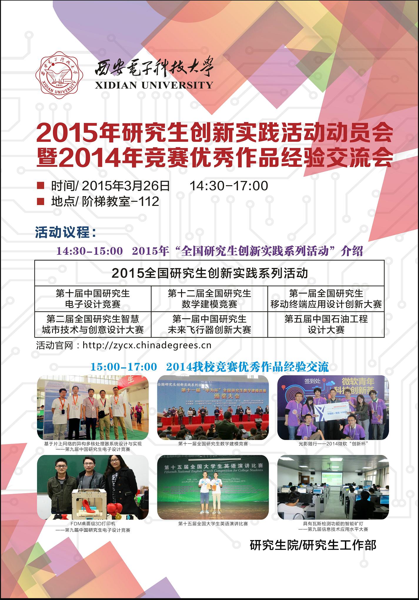 关于“XC体育2015年研究生创新实践活动动员会暨2014年竞赛优秀作品经验交流会”的通知