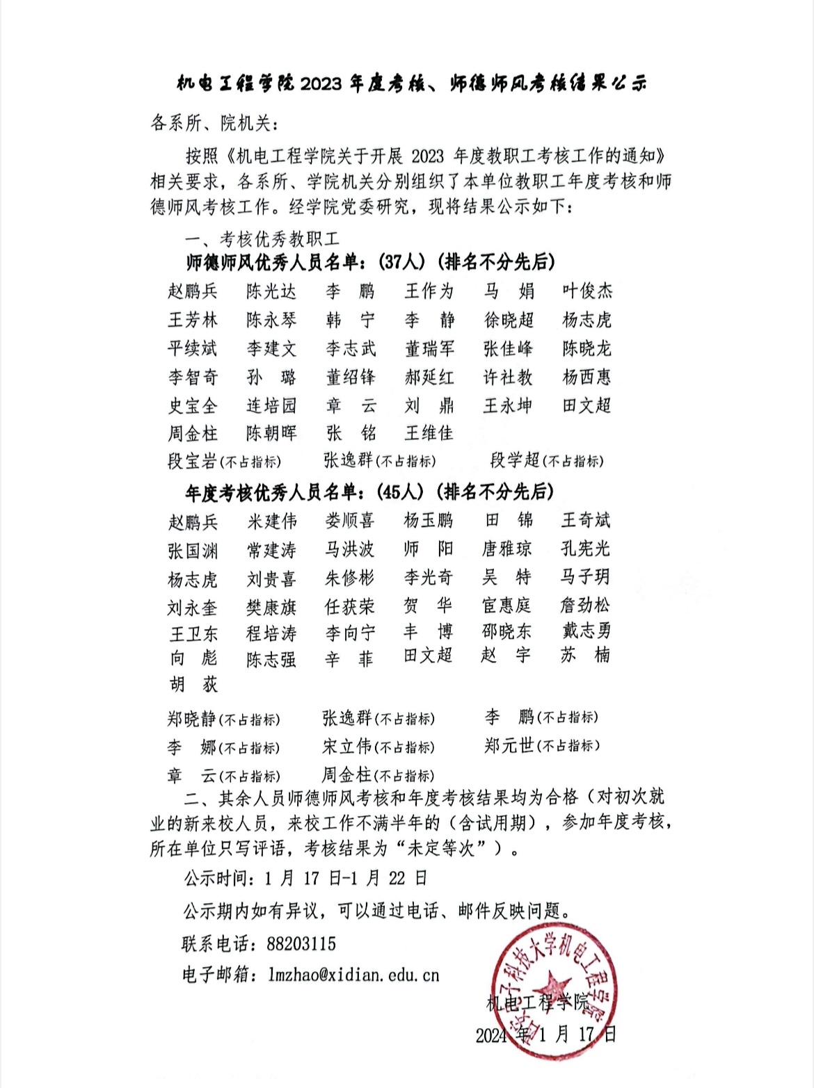 XCSport2023年度考核、师德师风考核结果公示(公示期已过)