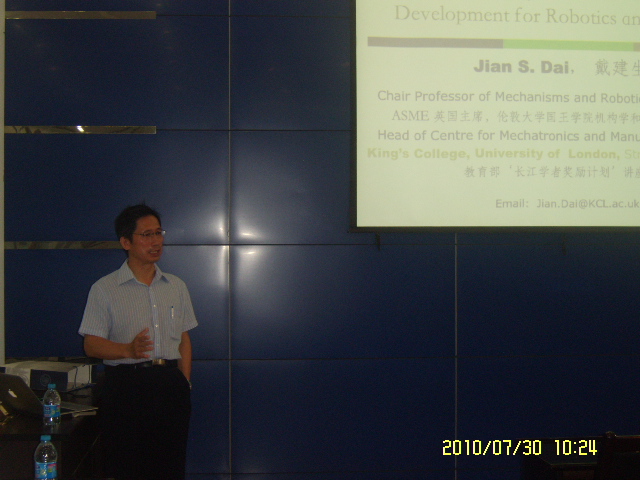 戴建生教授是国际著名机构学/机器人学专家,教育部“长江学者”讲座教授,英国伦敦大学国王公司机械电子与制造系统中心主任。IMechE、ASME、IEEE及IFToMM理事,IEEE Transactions on Robotics、Robotica、ASME Journal of Mechanisms and Robotics副主编及多种中国一级杂志编委,EPSRC、NSFC及NSERC等项目会评专家。