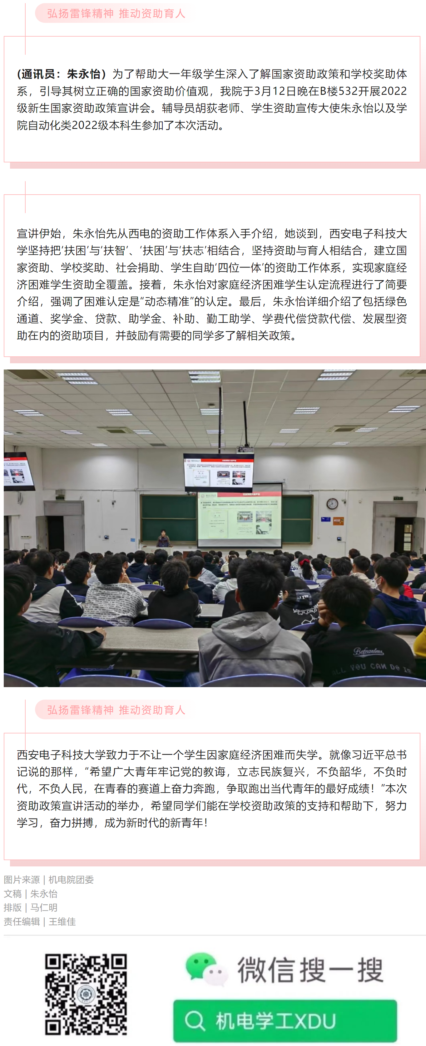 弘扬雷锋精神 推动资助育人│XCSport开展资助政策宣讲活动