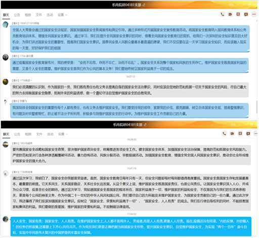 支部发展对象武彦斌也书写了自己的想法:国家安全从境内到境外,从网上到网下,既包括政治、军事等传统安全,又包括经济、文化、社会、科技、生物、网络等非传统安全问题,和我们每一个人都有很大的关系。我们作为新时代的青年,我们更要履行维护国家安全的责任和义务,时刻警惕外国间谍势力的渗入,主动维护国家安全。