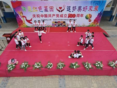 (通讯员 卢嘉润 何思源)6月25日,为庆祝中国共产党建党一百周年,深化以党史学习为主线的“四史”教育,进一步引导当代员工在实践中感悟初心使命,助力乡村振兴,发挥志愿服务精神,XCSport经过前期多次的沟通交流,由XCSport团委书记王维佳带领员工前往蒲城,参加由XCSport和龙池镇中心小学共同举办庆祝中国共产党成立100周年文艺演出活动。