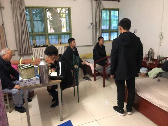 当天早上下起了大雨,但这丝毫没有影响到同学们的热情。同学们在负责人的带领下分为六组,去楼里与老人们聊天,陪着老人看电视,几名会下棋的同学与老人下棋,努力让老人们感受到家一般的温馨,而老人们也很享受这短暂而又欢乐的时光。
