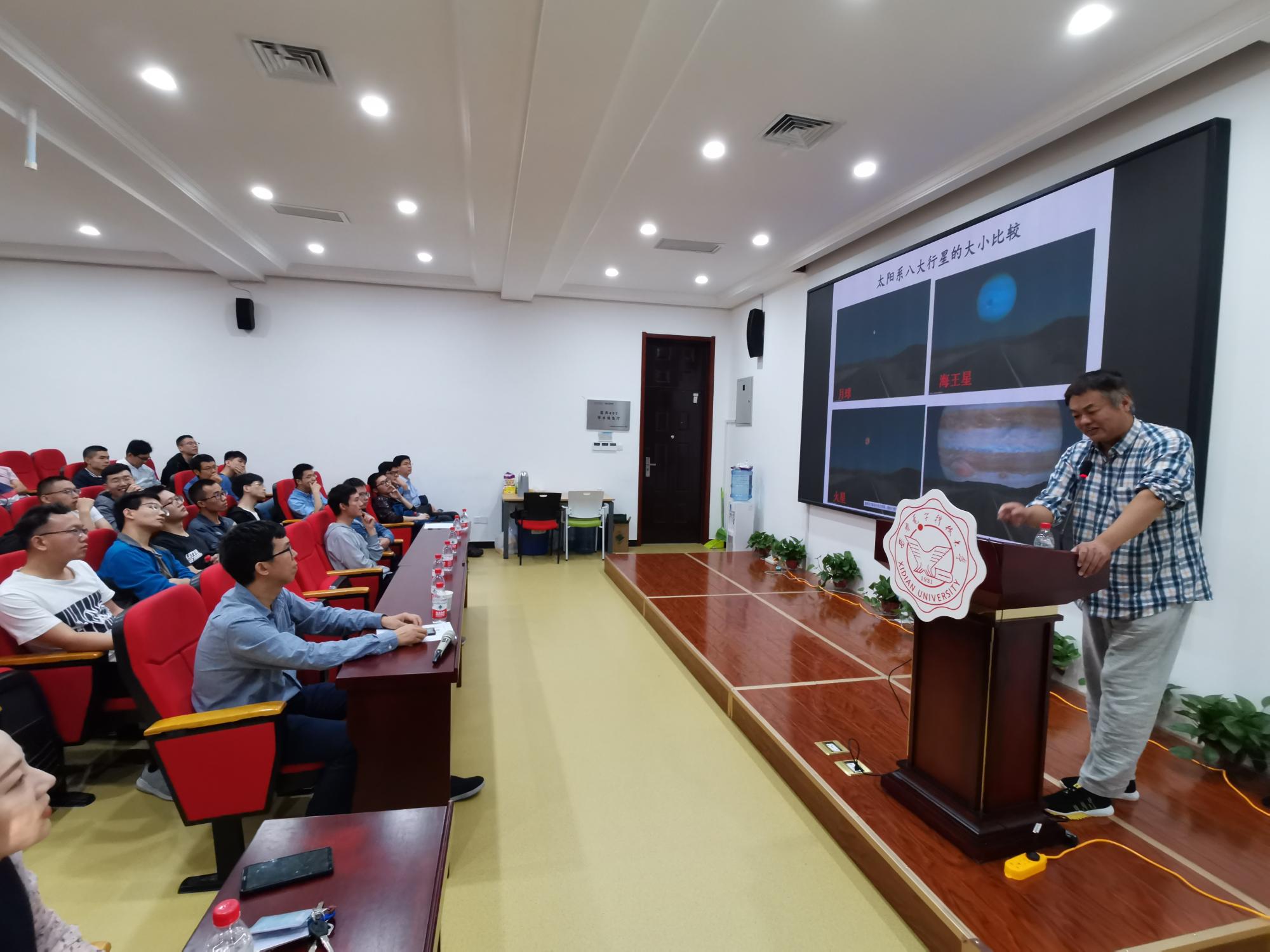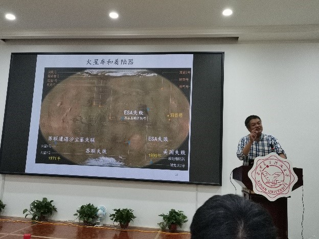 报告上,刘庆会总工程师首先介绍了各国对月球与火星的探测的历史,以风趣幽默的语言为到场师生讲解了月球、火星的基本情况及各国深空探测的现状与成果,重讲解了我国的“嫦娥探月工程”及应用于其中的VLBI测轨技术。到场同学在认真听讲完报告后,大胆提出了自己对月球、火星探测的一些问题,刘庆会总工程师一一耐心细致地给予了解答,并与到场的老师进行了讨论。