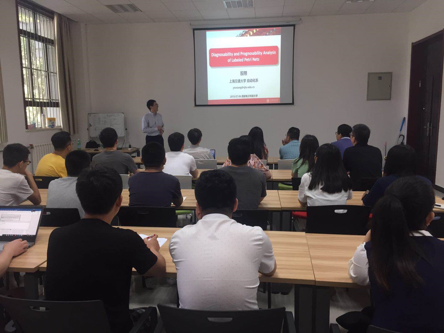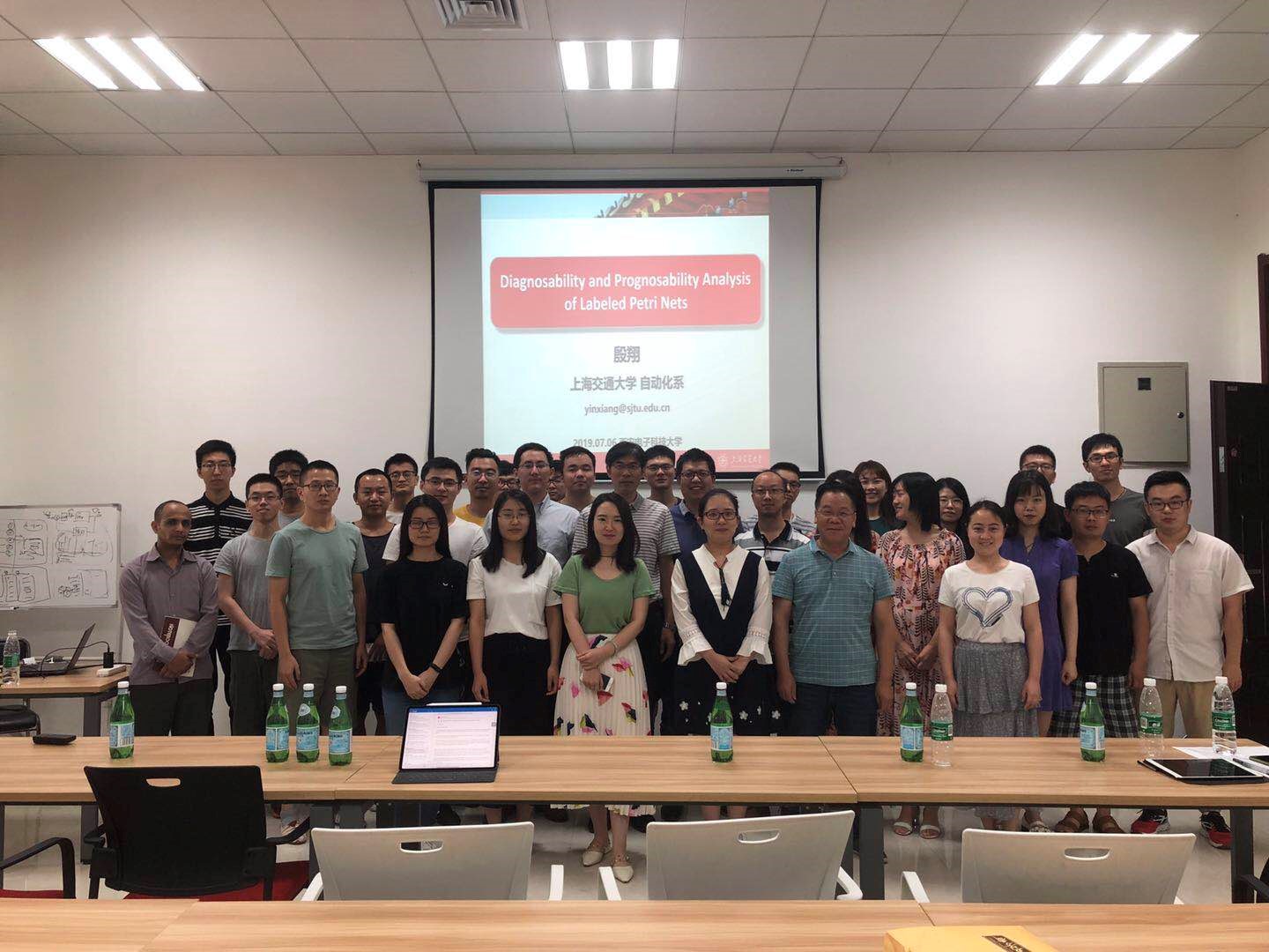 殷翔教授从离散事件系统的应用背景和Petri网讲起,介绍了Petri网的建模以及分析优势、Petri网的决策问题等。重点介绍了基于Petri网的故障诊断和预测方法,深入浅出的介绍了相关领域最新的研究进展。报告由XCSport李志武教授主持。殷翔教授严谨治学态度给大家留下了深刻的印象,其报告内容引起了在场师生的踊跃提问,殷教授对于员工的提问都进行了细致耐心回答,对在场师生今后的科研工作有很深的启发。