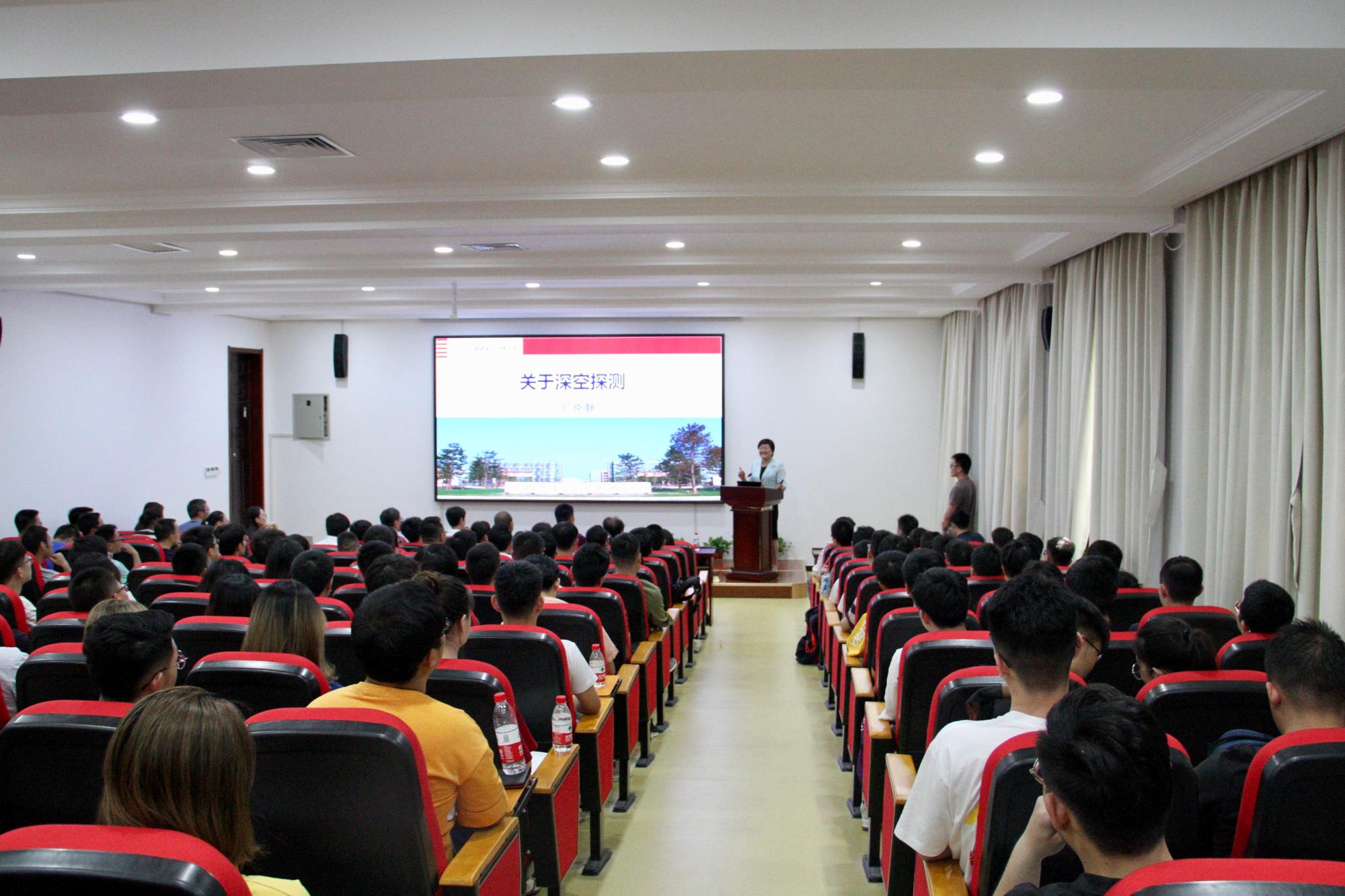 5月26日下午3点,公司在北校区“菲声493”学术报告厅举办“机遇+”高峰论坛,郑晓静院士应邀作了题为《关于深空探测》的学术报告,面向广大师生介绍“觅音”计划。公司领导班子、师生代表200余人共同聆听了报告。报告会由执行经理黄进教授主持。