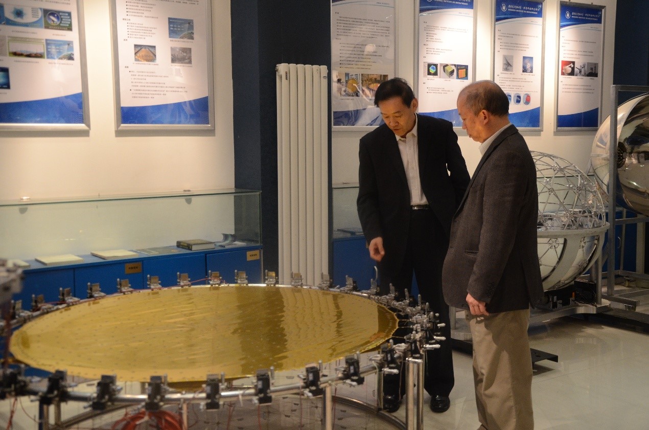 报告会后,陆贵文院士,在段宝岩院士陪同下,前往西电电子装备结构设计教育部重点实验室参观FAST 5m模型、空间可展开天线样机等实验模型。