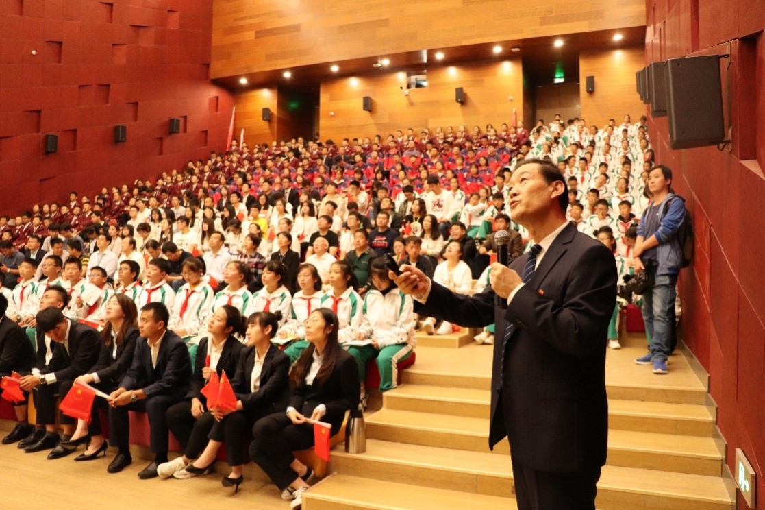 随后,段宝岩院士做了题为《砥砺奋进70年,巍巍黉宫西军电——漫谈逐日工程》的精彩报告,现场反映热烈。互动环节,在场员工纷纷踊跃发言,新奇的想法层出不穷。段院士均一一耐心解答,悉心指导,并勉励广大学子发扬延安精神、传承红色基因,用知识改变命运,用科技报效祖国。最后,全场人员起立,合唱《我和我的祖国》,共同向祖国告白。