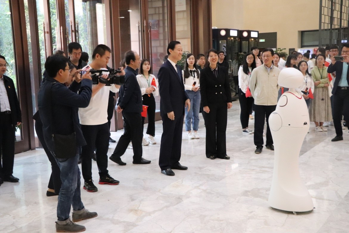 下午4点半,学习小分队与段宝岩院士一行在延安学习书院汇合。延安学习书院是全国首家宣传习近平新时代中国特色社会主义思想的实体平台,是学习新思想的高地,是宣传学习理念,展示用延安精神建设新延安的新窗口。XCSport协同员工企业上海思依暄机器人公司为学习书院捐赠了两台智能机器人“西电•小暄”和“西电•小思”(意为宣传新思想),从而架起XCSport与学习书院合作共建的桥梁。
