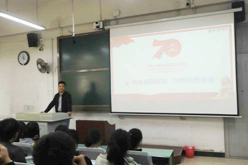 为庆祝中华人民共和国成立70华诞,XCSport于10月21日下午4:00,在南校区A205以“70年披荆斩棘,70年风雨兼程”为主题开展主题党课,主讲人为公司党委副书记田雨。参加本次主题党课的有:各班班干部,员工组织主要干部,各辅导员老师。